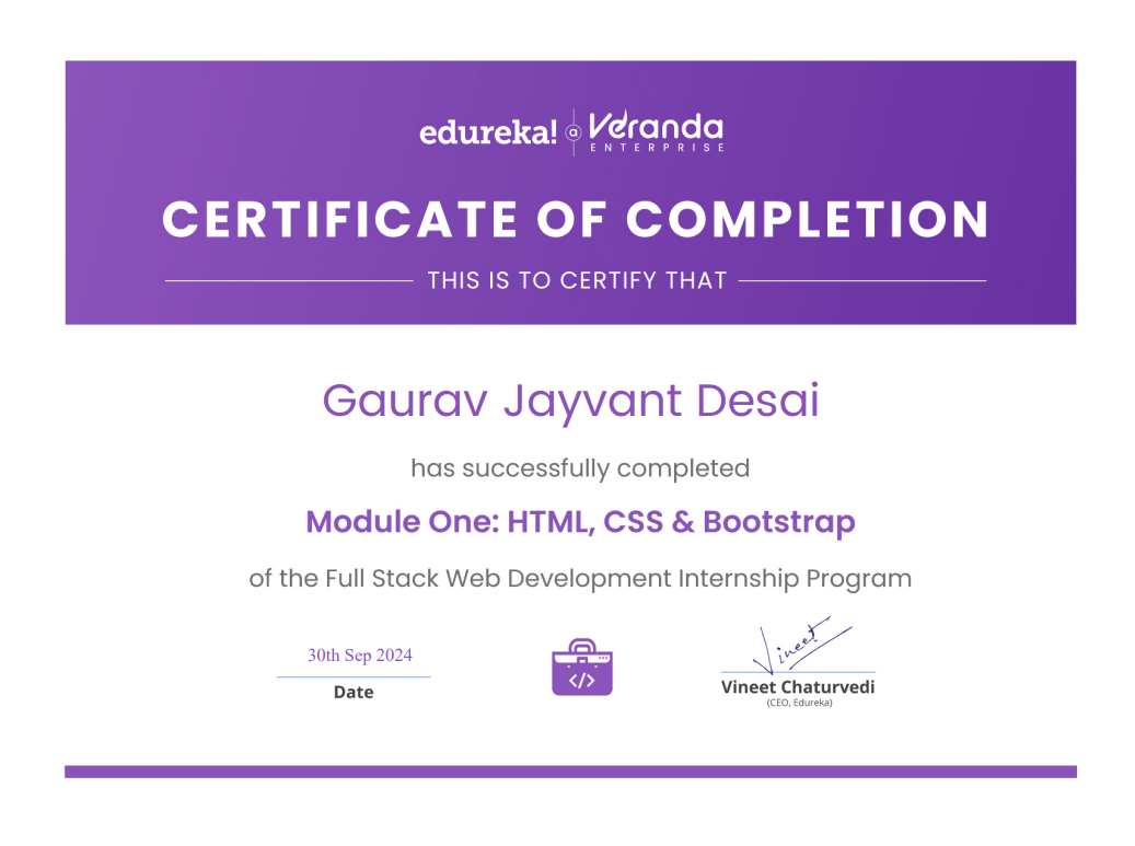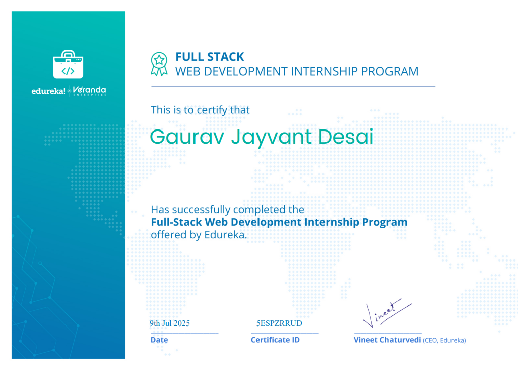 During my internship with Edureka (Veranda Enterprise), I gained practical exposure to HTML, CSS, Bootstrap, and basic JavaScript, along with real-world website content handling and UI improvements.